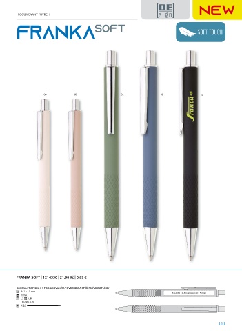 NEW | POGUMOVANÝ POVRCH FRANKA SOFT 66 60 52 42 80 FRANKA SOFT | 1214550 | 21,90 Kč | 0,89 € KOVOVÁ PROPISKA S S POGUMOVANÝM POVRCHEM A STŘÍBRNÝMI DOPLŇKY 141 x 10 mm A: L2 [60 x 6,5 mm] UV2 [60 x 5 mm] hliník L2 A, B UV2 A, B X-20 • 111