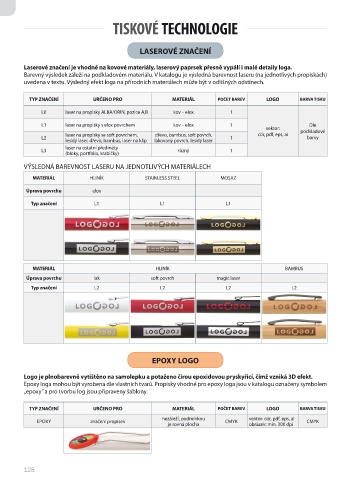 Barevný výsledek záleží na podkladovém materiálu. V katalogu je výsledná barevnost laseru (na jednotlivých propiskách)