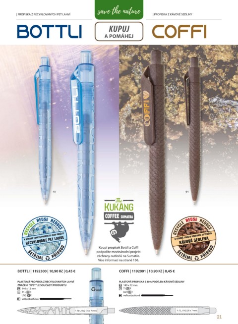 BOTTLI | 1192300 | 10,90 Kč | 0,45 € COFFI | 1192001 | 10,90 Kč | 0,45 €