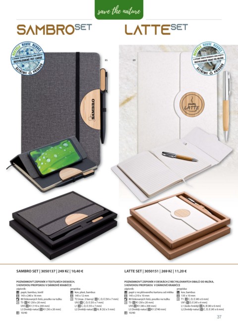 SAMBRO SET | 3050137 | 249 Kč | 10,40 € LATTE SET | 3050151 | 269 Kč | 11,20 €