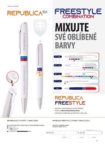 REPUBLICA SK | 1121475 | 11,90 Kč | 0,50 € REPUBLICA FREESTYLE | 1121400 | 17,90 Kč | 0,75 €