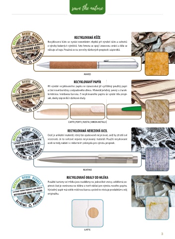 RECYCLE REUSE REDUCE a část nové buničiny z odpadového dřeva. Materiál je lehký, pevný s charak-