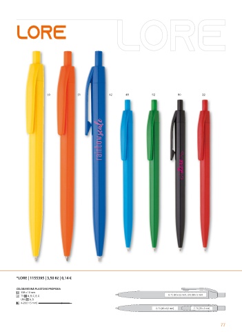 LORE 10 15 42 48 52 80 22 *LORE | 1155395 | 3,50 Kč | 0,14 € CELOBAREVNÁ PLASTOVÁ PROPISKA 138 x 10 mm A: T1 [50 x 6,5 mm], UV1 [80 x 5 mm] T1 A, B, C, F, G UV1 A, B X-20 [115 mm] • C: T1 [40 x 6,5 mm] F: T1 [20 x 5 mm] 77