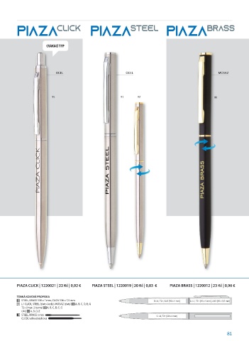 PIAZA CLICK | 1220021 | 22 Kč | 0,92 € PIAZA STEEL | 1220019 | 20 Kč | 0,83 € PIAZA BRASS | 1220012 | 23 Kč | 0,96 €