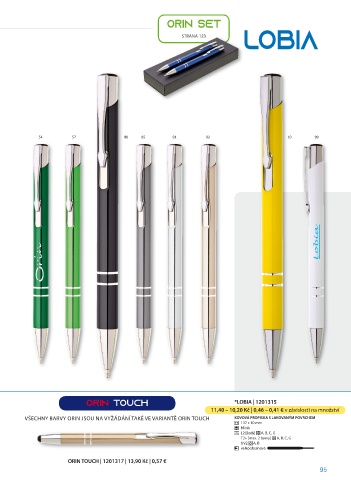 VŠECHNY BARVY ORIN JSOU NA VYŽÁDÁNÍ TAKÉ VE VARIANTĚ ORIN TOUCH KOVOVÁ PROPISKA S LAKOVANÝM POVRCHEM